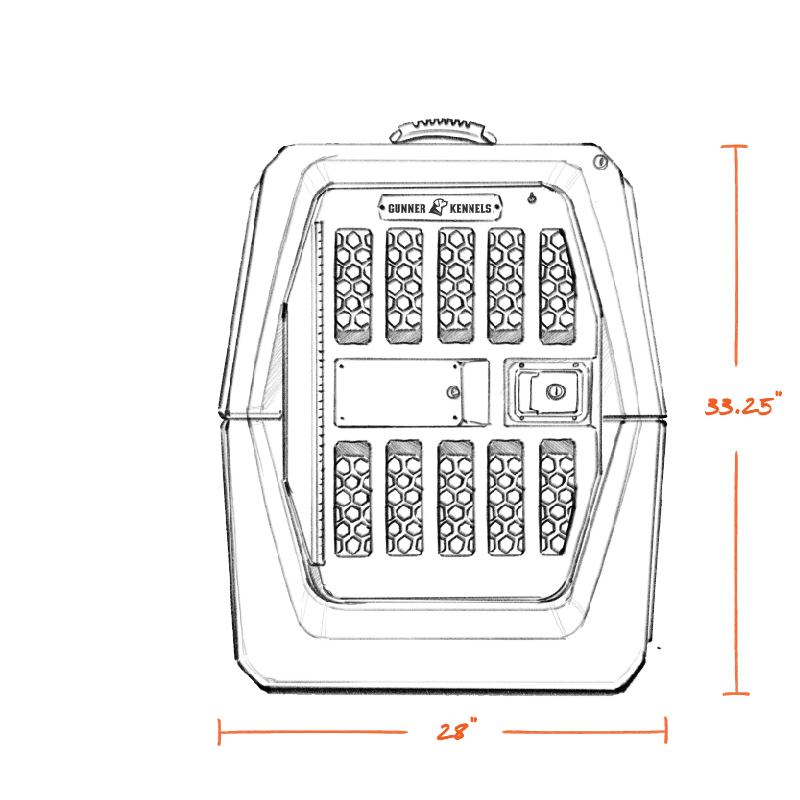 INTERIOR: 33.25“ (L - Floor) x 21” (W - Floor) x 29“ (H) / 23” (W) at kennel's widest interior point
