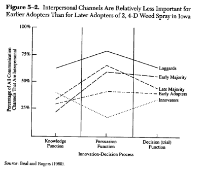 - Generalization 8-4: When interpersonal diffusion networks are heterophilous, followers seek opinion leaders with greater mass media exposure.