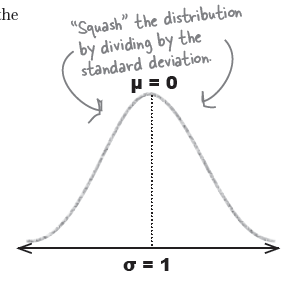 그래프를 표준편차가 1이 되도록 찌부러뜨린다 (squash).
