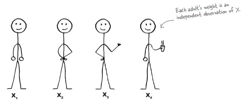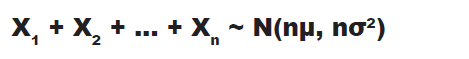 | $X_{1} + X_{2} + . . . X_{n}$ $X \sim N(\mu, \sigma^{2})$ | $X_{1} + X_{2} + . . . X_{n} \sim N(n\mu, n\sigma^2)$ | $X_{1} + X_{2} + . . . X_{n}$ are independent observation of X |