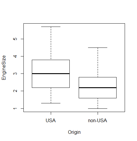- $\text{EnginSize: } \bar{X}_{\text{USA}} = \bar{X}_{\text{nonUSA}}$