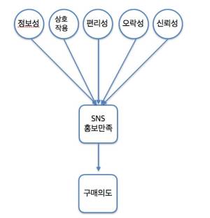 참고문헌: 홍다운 (2011). sns의 특성이 제품에 대한 태도, 구매의사 및 추천행동에 미치는 영향. 학위논문. 70-90