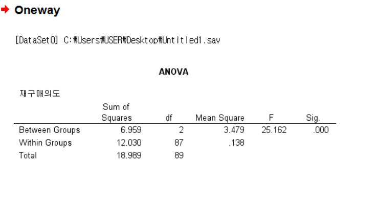 <F-test 결과> f값은 25.162이고 F critical value(0.05)가 19.37입니다. F값이 F critical value보다 더 크기 때문에 95% 확률로 가설을 입증 할 수 있었습니다.