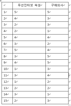 가설 : 스마트폰의 무선 인터넷 속성에 대한 만족도는 스마트폰의 재구매율에 영향을 끼친다.