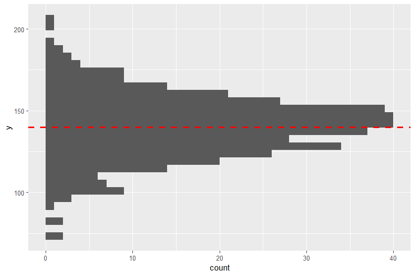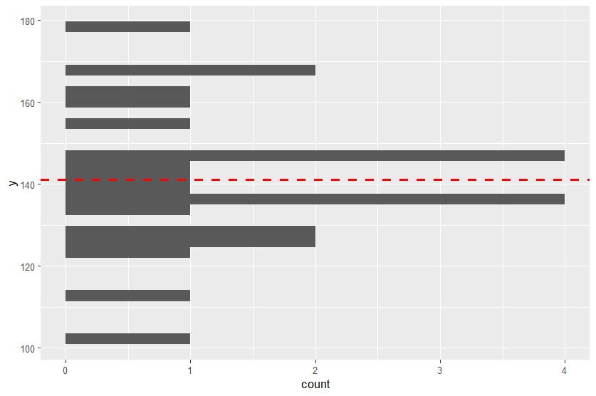 geom_hline(aes(yintercept=mean(y)), size=1.5, color="red") +