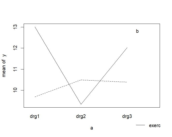 > aov.dat.all2 <- aov(y ~ a + b + a:b, data = dat)