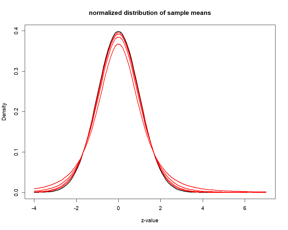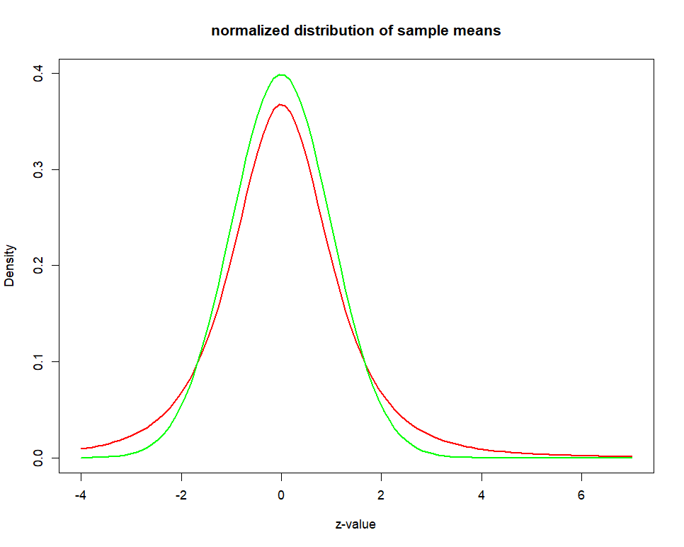 main = "normalized distribution of sample means",