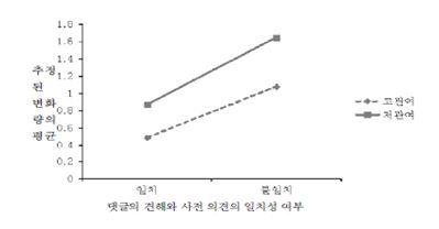 댓글의 견해는 읽는 이용자의 의견변화에 상대적으로 큰 영향을 미쳤다. 다시 말해, 저관여