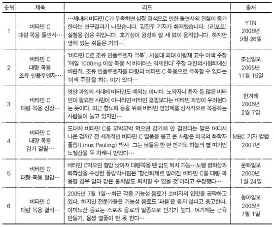분석결과, 먼저 참가자들은 ‘비타민C 대량복용돌연사…’라는 제목의 동일한 내용의 웹페이지를 검색엔진이 1위로 추천한 경우가 6위로 추천한 경우보다 통계적으로 유의미하게 오랜 시간을 들여서 검토한 것으로 나타났다. 따라서 이 기사의 경우<연구가설2-1>은 지지되었다.