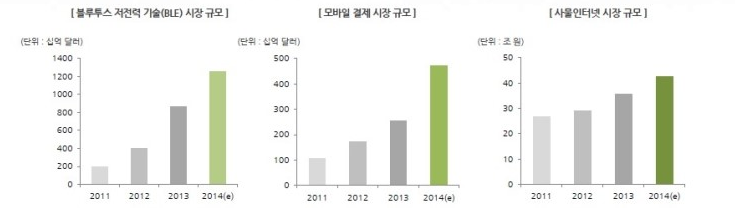 국내외 광고시장은 전반적으로 정체 혹은 소폭 증가세에 머물고 있지만, 모바일 광고시장은 스마트폰의 대중화로 인해 빠른 성장세를 보이고 있습니다. 특히 저희 조는 인터넷에 연결된 기기가 사람의 개입 없이 상호간에 알아서 정보를 주고 받아 처리하는 IoT기술을 이용한 광고 형태인 ‘비콘’을 중심으로 조사를 하였습니다. 먼저 아래의 사례를 통해 비콘을 주제로 설정한 이유를 서술하였습니다.