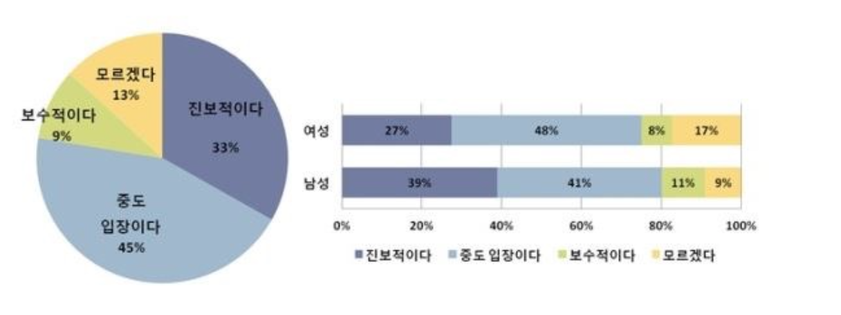 그 어느 때보다 소셜미디어(Social Media)를 이용한 홍보전이 치열했던 지난 18대 대통령 선거 때도 마찬가지이다. 하지만 18대 대통령 선거의 결과는 방금 말했었던 SNS의 영향력을 설명한 것과 반대로 그 영향력에 의문을 제기하게 만들기도 했다. SNS가 커다란 영향력을 미친다는 주장들이 잠잠해지기도 했다. 아래의 그래프를 보면 진보와 중도 입장이 대다수였지만 투표결과는 달랐다. (그림 1 참조)