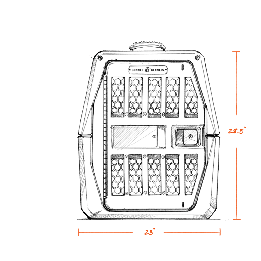 INTERIOR: 33.25“ (L - Floor) x 21” (W - Floor) x 29“ (H) / 23” (W) at kennel's widest interior point