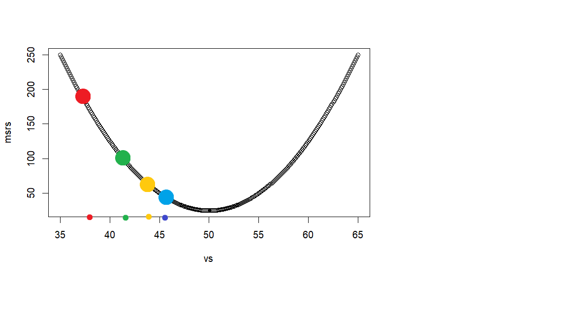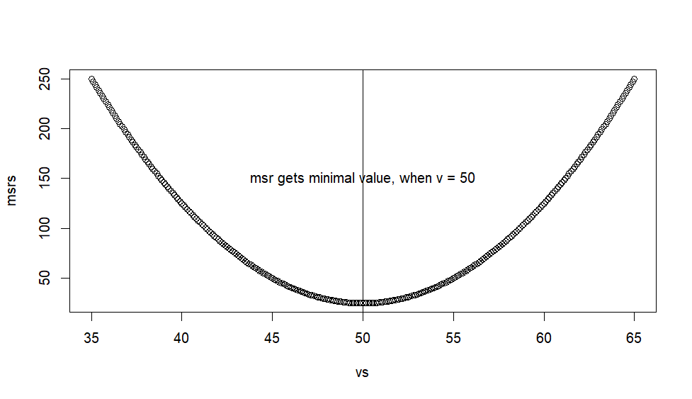• v 값으로 x집합의 평균값을 사용하는 것이 최소 msr값이 된다는 것이 맞다면