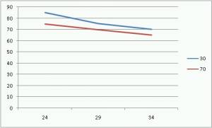 | 70% | $ \overline{X}=80 $ | $ \overline{X}=70 $ | $ \overline{X}=60 $ | $ \overline{X}=70 $ | |