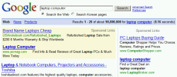 구글은 이 후 광고를 하기 시작했는데, 광고는 검색단어 혹은 어구의 문맥과 함께 나타나는 광고로 검색결과의 오른 쪽에 텍스트 형태로 배열되는 모양을 띄었다. 이를 !AdWords라고 하는데, 2006년의 순수익이 (revenue) 약 $10,604,917000 (over one billion) 에 달한다고 한다5). Google의 이 광고 기법은 사용자의 검색어와 문맥이 맞는 광고내용이 광고로 나온다는 것; 둘째로 이 광고가 다른 사이트와 다르게 그래픽이 포함되어 있지 않다는 것 (특히 움직이는 동영상 등); 오른 쪽 구석에 최소한의 형태로 나열된다는 것 등이 사용자에게 어필되어서 크게 반감을 사지 않게 되었다. Google은 이후 blogger나 개인적인 혹은 사업을 하는 웹사이트에 구글이 추천하는 광고를 (그 사이트의 내용과 성격이 맞는 광고) 싣도록 하고, 그 수익을 나누는 방법으로 광고사업을 하고 있기도 하다 (AdSense6) ).