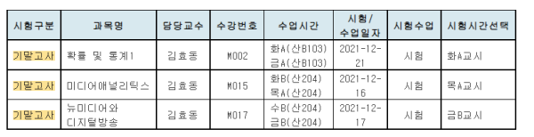 - 미디어애널리틱스(2학년전선) 수,금 10:30-12:00 B1