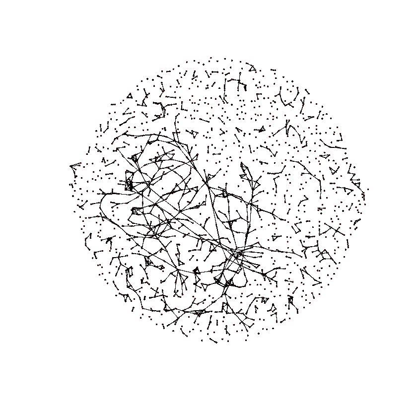 # Faux Magnolia High School data (Continued) components(fmh) fmh.comp <- component.dist(fmh) names(fmh.comp) table(fmh.comp$csize) head(fmh.comp$membership,100) grp2 <- (1:1461)[fmh.comp$membership=="2"] str(grp2) # Faux Magnolia High School data (Continued) fmh.clique <- clique.census(fmh, clique.comembership="bysize") names(fmh.clique) str(fmh.clique$cliques) core.list <- c(122,183,530,1143,1160) # fmh.clique$cliques[[5]] fmh.comp$membership[core.list] fmh[core.list,core.list] summary(sort(geodist(fmh)$gdist[122,])[2:439])[-4] # end