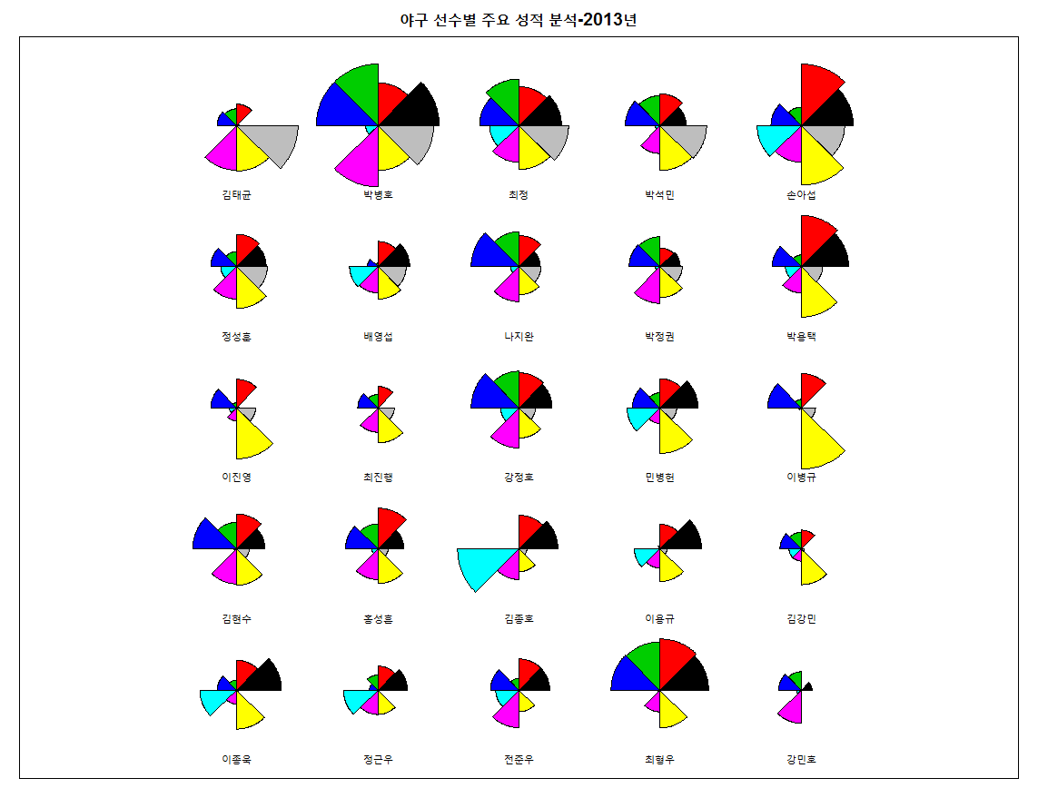main=" 야구 선수별 주요 성적 분석-2013년 ")