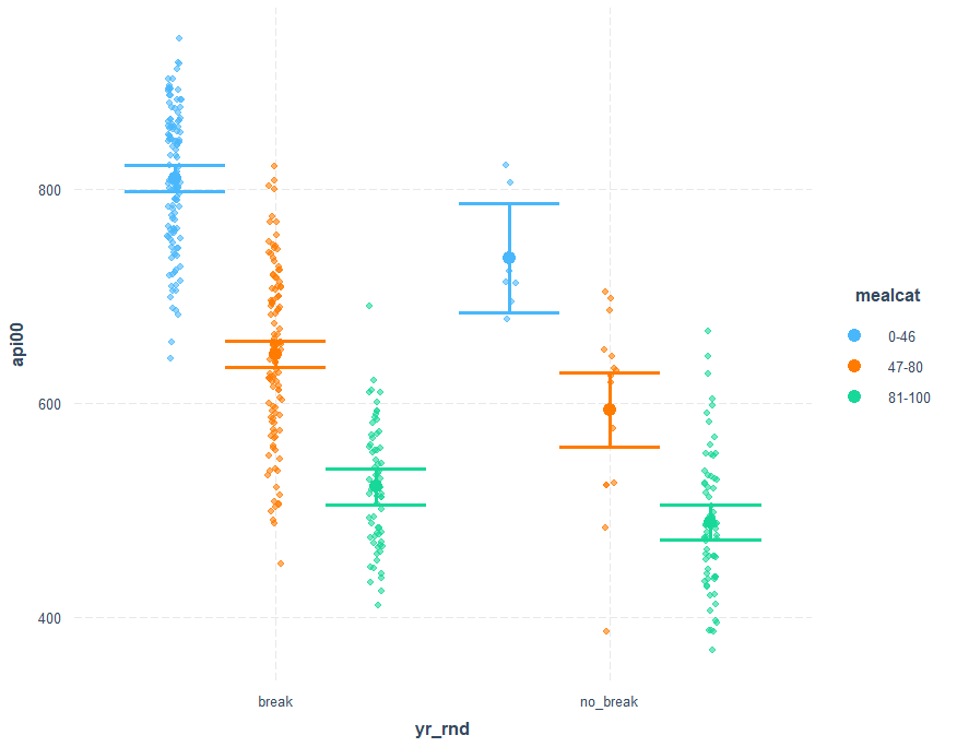 cat_plot(mod4, pred=yr_rnd, modx=mealcat) cat_plot(mod4, pred=yr_rnd, modx=mealcat, plot.points = TRUE)