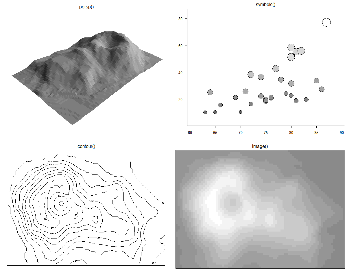It is important to understand the distinction between high-level and low-level graphics functions. A high-level graphics function starts a new graph. It initializes the graphics window (creating it if necessary); sets the scale; maybe draws some adornments, such as a title and labels; and renders the graphic. Examples include: