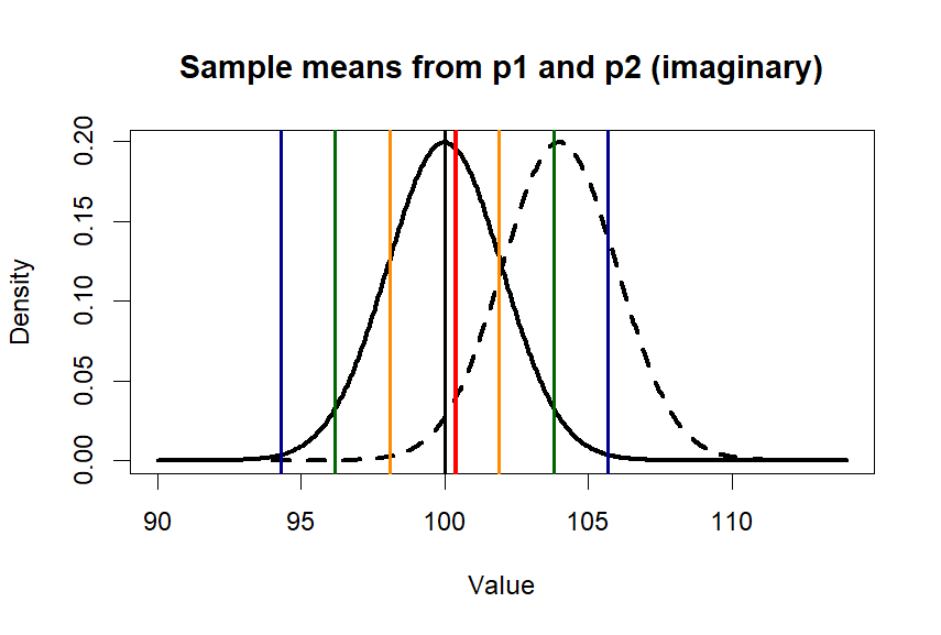 + main = "Sample means from p1 and p2 (imaginary)",