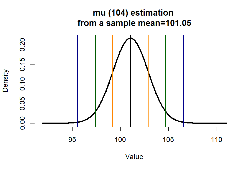 + main = paste0("mu (", m.p2, ") estimation \n", "from a sample ", "mean=", round(m.treated.s,2)),