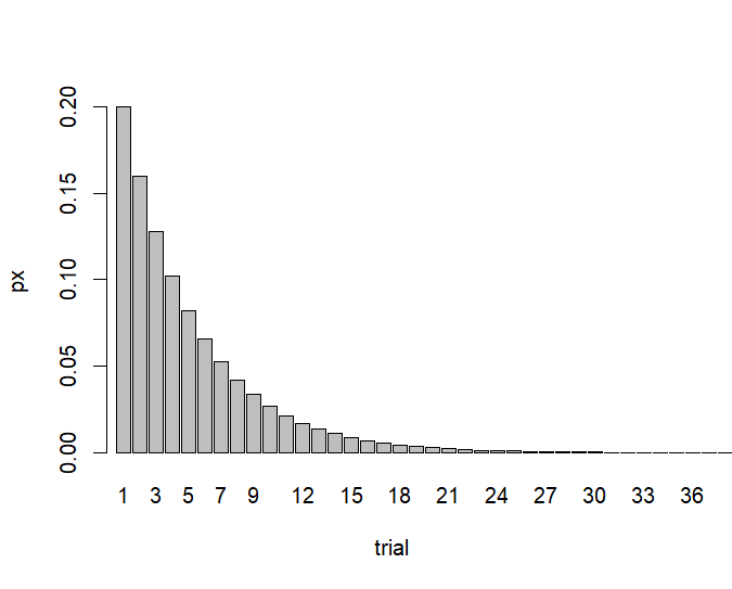 $P(X = r) = 0.8^{r-1} × 0.2$