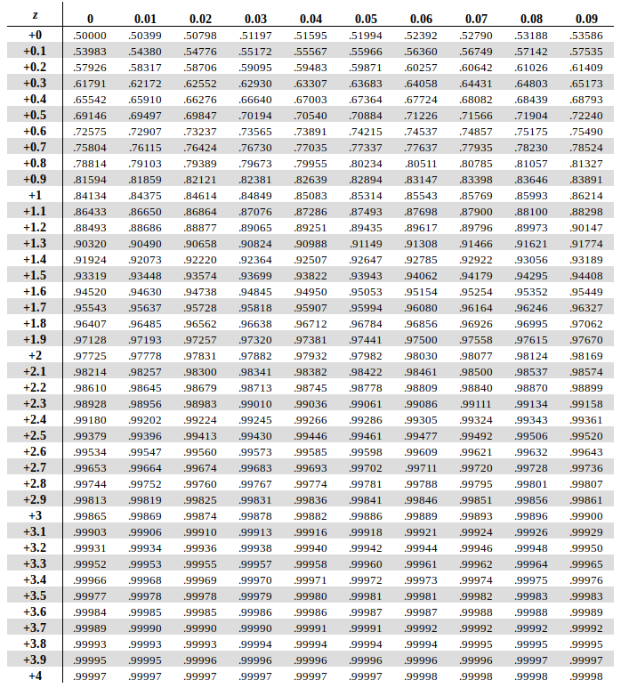 | z | 0.00 | 0.01 | 0.02 | 0.03 | 0.04 | 0.05 | 0.06 | 0.07 | 0.08 | 0.09 |