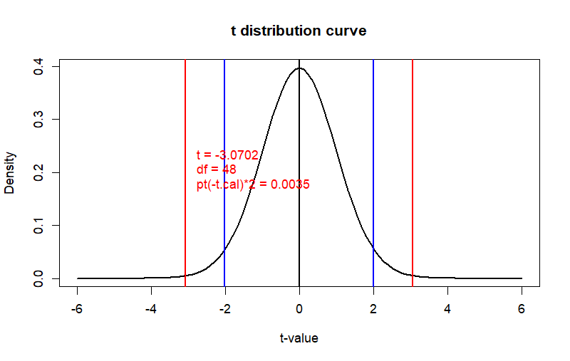 t = -3.0702, df = 48, p-value = 0.003515