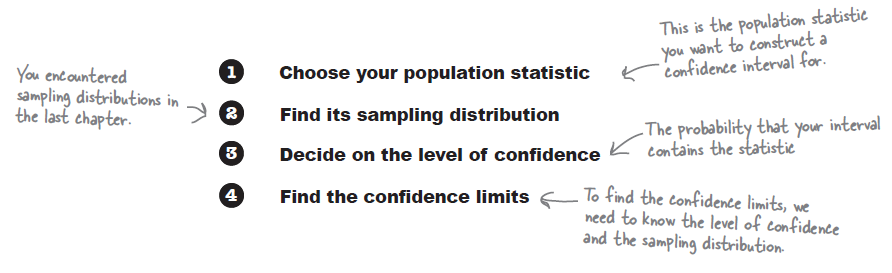 즉, 샘플의 평균을 Point estimate로 사용하고, 그 지점을 중심으로 95%의 확률을 가지는 구간을 구해 population의 평균으로 삼는다. 이 구간을 신뢰구간이라고 한다.