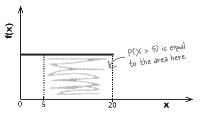 총 20 *1 의 면적 중에서 15 * 1의 면적이 P(X > 5)일 때의 확률이다. 이는