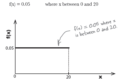 따라서 전체 면적을 1로 보는 상황에서, 이 경우는 f(x) = 0.05 라는 공식의 함수를 갖는다.