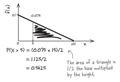 4. f(x) = 0.1 – 0.005x where 0 < x < 20 Find P(X > 5)