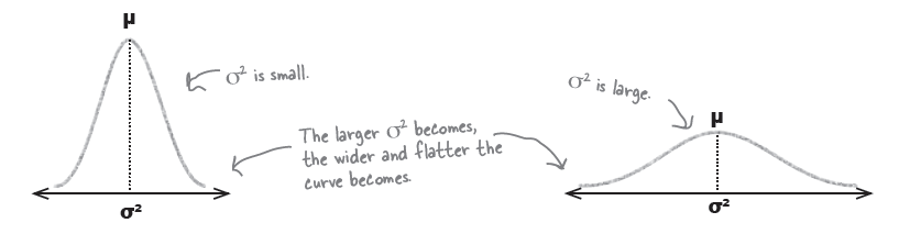 \begin{align*} \mu & = \text{mean} \\ \sigma^{2} & = \text{variance} \\ \sqrt{\sigma^{2}} & = \sigma \\ & = \text{standard deviation} \end{align*}