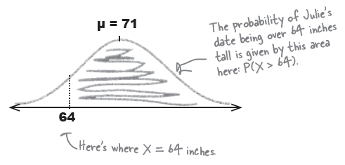 Julie's height = 64 inches 이므로, 아래의 면적에서 빗금친 부분을 구하면 된다.