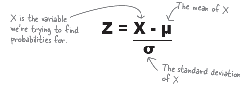 평균과 표준편차 값이 0, 1이 아닌 다른 값을 같는 분포는 0, 1 이 되도록 변환한 후에 probability를 구한다 (표준점수화).