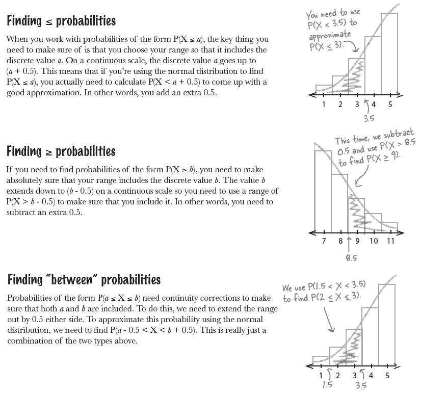 Q:What about continuity corrections for < and >? Do I treat those the same way as the ones for ≤ and ≥?