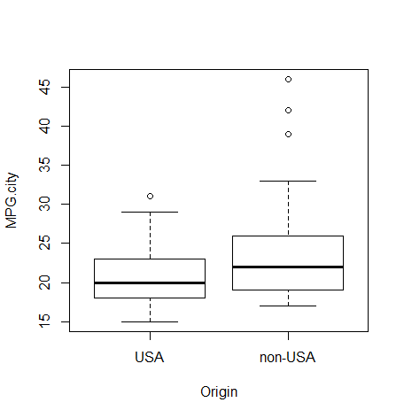 - $\text{MPG.city: } \bar{X}_{\text{USA}} = \bar{X}_{\text{nonUSA}}$