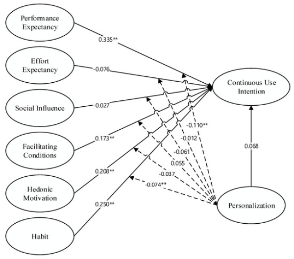 가설 3 (H3). 개인화는 성과 기대와 뉴스 앱의 지속적 사용 의도 간의 인과관계를 조절하는 역할을 한다.