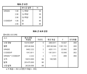 2. Factorial Anova에서는 학년별로 수준별 프로그래밍을 명확히 분류한 점이 인상적이다.