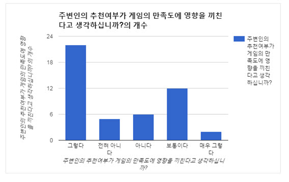 t-test분석으로 보아 유의확률이 0.05보다 낮아서 추천여부에 따라 게임만족도에 영향을 끼친다는 가설이 유의미 하다고 예측가능하다.