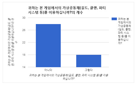 1.귀하는 본 게임에서의 가상공동체(길드, 클랜, 파티 시스템 등)를 이용하십니까?