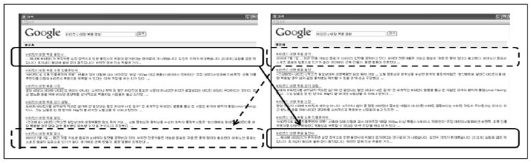 <‘구글-정순위’ 집단과 ‘구글-역순위’ 집단에 제시된 검색결과>