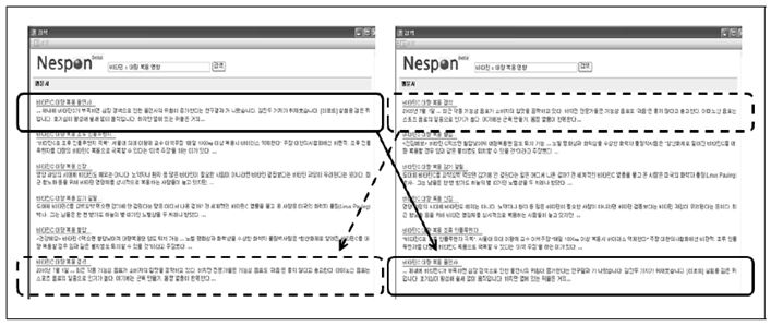 <‘네스폰-정순위’ 집단과 ‘네스폰-역순위’ 집단에 제시된 검색결과>