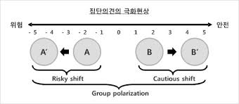 집단 극화는 집단을 이룬 뒤의 개인들의 반응 평균이 집단을 이루기 전의 반응 평균과 동일한 방향에서 더 극단적으로 되는 현상을 말한다. 집단 토론 전 구성원들의 개인 의사 결정의 평균이 모험적인 경향을 가지고 있을 때 집단 의사 결정은 더 모험적으로 이행하며, 개인 의사 결정의 평균이 보수적인 경향을 갖고 있을 때 집단 의사 결정은 더 보수적인 쪽으로 극화된다. 집다 안에서 의사결정이 더 모험적이게 되는 현상을 모험이행이라 하고 더 보수적으로 되는 것을 보수이행이라고 한다. 이 두 가지 현상을 집단극화 현상이라고 한다.