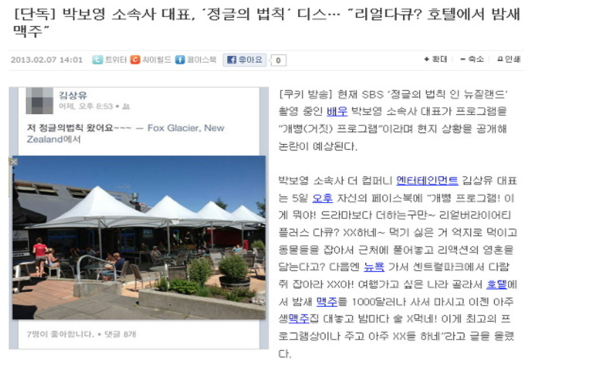 [그림 3] ‘정글의 법칙’ 폭로 게시글