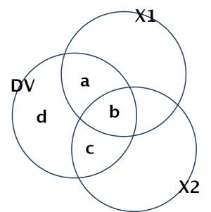 • b → 애매한 부분, Y에 대한 설명력의 원인으로 X1 이 될수도 X,,2,, 가 될 수도 있다.
