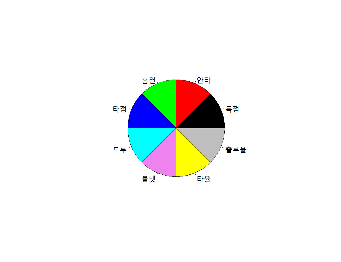 pie(val,labels=label,col=color, radius=0.1, cex=0.6) # 범례용 그래프 만들기