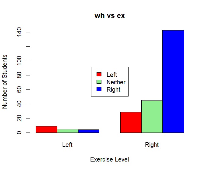 + xlab = "Exercise Level", ylab = "Number of Students")