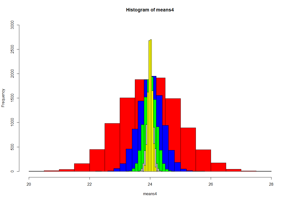 > sss <- c(4,25,100,400,900,1600,2500) # sss sample sizes